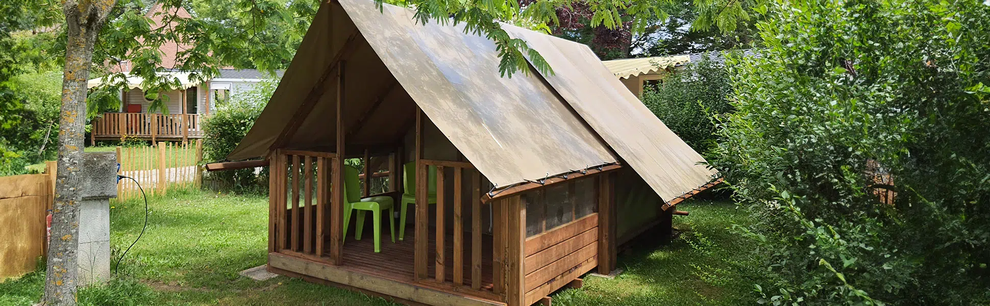 Petite cabane toilée et bois pour 2 personnes, idéale pour une étape ou un court séjour.